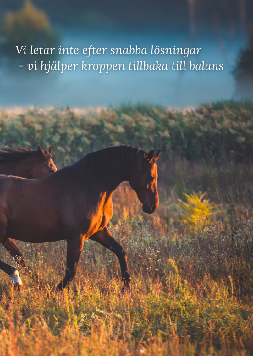 Allt fler hästar visar tecken på att något inte riktigt fungerar även när de ser friska ut "på ytan". Metabola rubbningar som EMS, återkommande fångkänningar, magproblem och misstänkta magsår. Tarmdysbios med gaser, lös träck eller instabil aptit. Kolik utan tydlig orsak. Luftvägsbesvär som aldrig riktigt klingar av. Hudproblem som mugg och klåda som återkommer säsong efter säsong. Vi ser hormonella svängningar. Spända och överreaktiva individer. Hästar som tappar energi, muskelkvalitet eller arbetsvilja. Hästar som blir ovanligt känsliga – eller tvärtom avstängda.